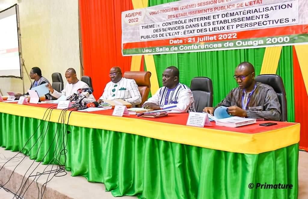 Le Premier ministre, Albert Ouédraogo, a présidé ce jeudi 21 juillet 2022 à Ouagadougou, la cérémonie d’ouverture de la 23e session de l’Assemblée Générale des Etablissements Publics de l’Etat (EPE). Il s’agira d’examiner au cours de cette rencontre, les rapports de gestion des Conseils d’Administration et les états financiers de l’exercice 2021, de 105 établissements publics, toutes catégories confondues.