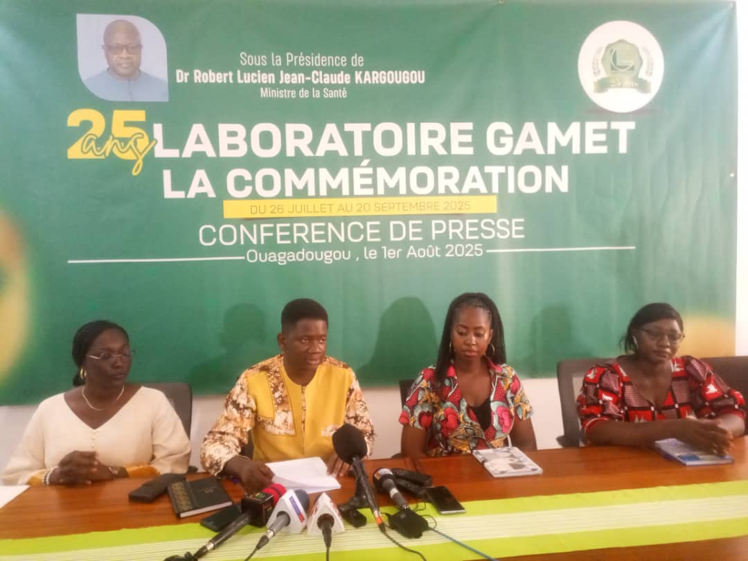 Ce vendredi 1ᵉʳ août 2025, le Laboratoire Galénique des Médicaments Modernes et Traditionnels (GAMET) a tenu une conférence de presse dans ses locaux à Ouagadougou, marquant le lancement du compte à rebours vers la célébration de son 25ᵉ anniversaire, prévue du 26 juillet au 20 septembre prochains. L’événement a été présidé par le Directeur général du laboratoire, le Dr Anicet ...