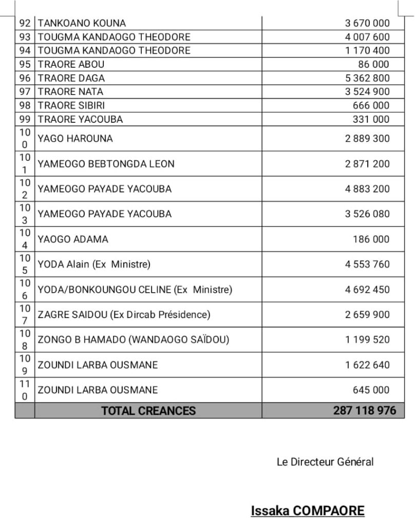 Pour toute fin utile la liste de ces débiteurs ainsi que les montants dus sont joint ci-dessus :