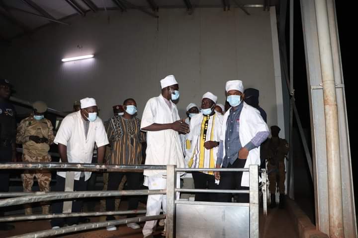 À en croire Dr Amadou DICKO, cette visite se veut une prospection en vue de la construction d’abattoirs modernes dans d’autres localités du pays. « 𝑫𝒂𝒏𝒔 𝒍𝒆 𝒄𝒂𝒅𝒓𝒆 𝒅𝒆 𝒍’𝑶𝒇𝒇𝒆𝒏𝒔𝒊𝒗𝒆 𝒂𝒈𝒓𝒐𝒑𝒂𝒔𝒕𝒐𝒓𝒂𝒍𝒆 𝒆𝒕 𝒉𝒂𝒍𝒊𝒆𝒖𝒕𝒊𝒒𝒖𝒆 2023-2025, 𝒖𝒏𝒆 𝒑𝒓𝒊𝒐𝒓𝒊𝒕é 𝒆𝒔𝒕 𝒂𝒄𝒄𝒐𝒓𝒅é𝒆 à 𝒍𝒂 𝒇𝒊𝒍𝒊è𝒓𝒆 𝒃é𝒕𝒂𝒊𝒍/𝒗𝒊𝒂𝒏𝒅𝒆. 𝑵𝒐𝒖𝒔 𝒆𝒏𝒗𝒊𝒔𝒂𝒈𝒆𝒐𝒏𝒔 𝒍𝒂 𝒄𝒐𝒏𝒔𝒕𝒓𝒖𝒄𝒕𝒊𝒐𝒏 𝒅’𝒂𝒃𝒂𝒕𝒕𝒐𝒊𝒓𝒔 𝒎𝒐𝒅𝒆𝒓𝒏𝒆𝒔, à 𝒍’𝒊𝒎𝒂𝒈𝒆 𝒅𝒆 𝒄𝒆𝒍𝒍𝒆-𝒄𝒊, 𝒂𝒇𝒊𝒏 𝒅𝒆 𝒎𝒆𝒕𝒕𝒓𝒆 à 𝒍𝒂 𝒅𝒊𝒔𝒑𝒐𝒔𝒊𝒕𝒊𝒐𝒏 𝒅𝒆𝒔 𝒄𝒐𝒏𝒔𝒐𝒎𝒎𝒂𝒕𝒆𝒖𝒓𝒔 𝒅𝒆 𝒍𝒂 𝒗𝒊𝒂𝒏𝒅𝒆 𝒓𝒆𝒎𝒑𝒍𝒊𝒔𝒔𝒂𝒏𝒕 𝒍𝒆𝒔 𝒄𝒐𝒏𝒅𝒊𝒕𝒊𝒐𝒏𝒔 𝒅’𝒉𝒚𝒈𝒊è𝒏𝒆 𝒆𝒕 𝒅𝒆 𝒓é𝒅𝒖𝒊𝒓𝒆 𝒍’𝒆𝒙𝒑𝒐𝒓𝒕𝒂𝒕𝒊𝒐𝒏 𝒅’𝒂𝒏𝒊𝒎𝒂𝒖𝒙 𝒔𝒖𝒓 𝒑𝒊𝒆𝒅𝒔 », a-t-il souligné.