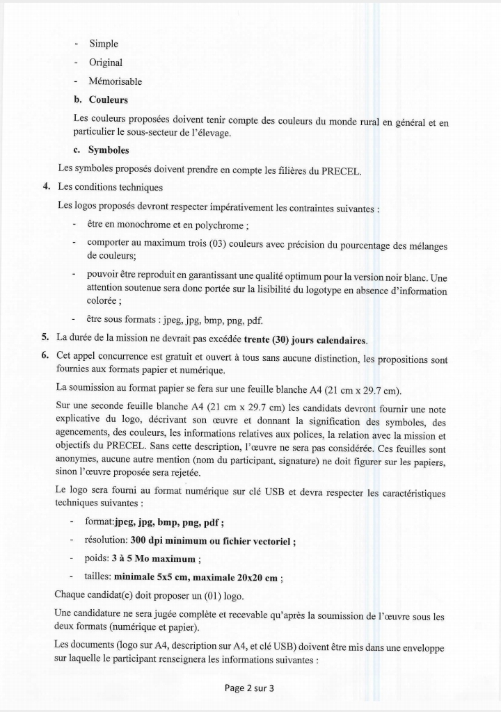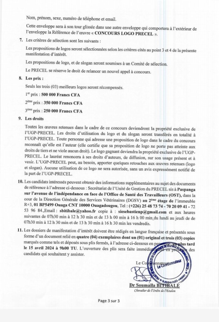 Dans ce communiqué daté du 18 mars 2024, le Gouvernement lance un concours pour la conception du logotype du Programme de Renforcement de l’Elevage au Burkina Faso (PRECEL).